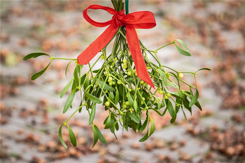 Zu den Pflanzen, die ebenfalls unweigerlich mit Weihnachten verbunden werden, gehört auch die Mistel. Sie spielt nicht nur in der Mythologie und der anthroposophischen Medizin eine herausragende Rolle. Noch älter als ihre Anerkennung als Heilpflanze ist der legendäre Brauch, sich zu küssen, wenn man zu zweit unter einem Mistelzweig steht. Die unter dem Mistelzweig besiegelte Freundschaft oder Liebe soll ewig währen. Seither ist es Brauch, diese Pflanzen zu Weihnachten mit einem roten Band zusammenzubinden und am oberen Türrahmen zu befestigen. Das Weihnachtsfest ist ja bekanntlich das Fest der Liebe…