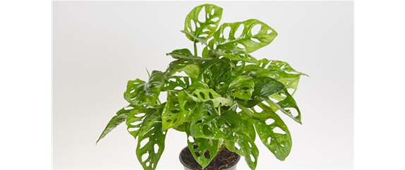Das Fensterblatt (Monstera adansonii) ist ebenfalls eine perfekte Wahl für Ihr Homeoffice. Kaum eine andere Grünpflanze kann mit ihren großen einzigartigen Blättern so begeistern. Schnell nimmt sie aufgrund ihrer Größe optisch eine führende Stellung ein. Sie verbessert im Nu die Raumluft und sorgt für eine höhere Luftfeuchtigkeit.