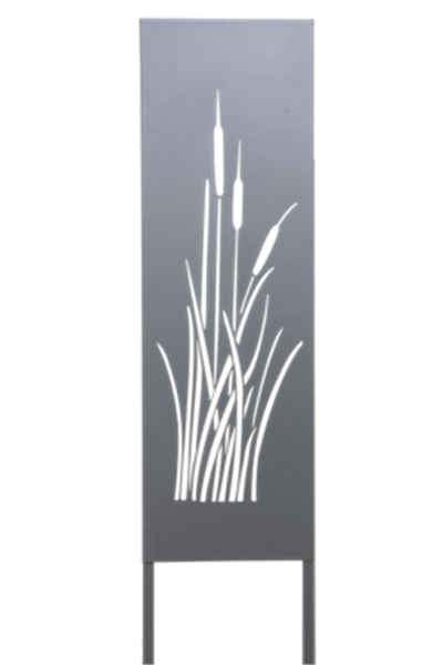 Diese Stele aus Metall verleiht Ihrem Garten das gewisse Etwas. Mit ihr können Sie schöne Kontraste setzen und Bereiche voneinander abtrennen. Geschickt neben Ihren Pflanzen platziert, zieht diese Stele mit einem Kolbengras-Motiv alle Blicke auf sich.